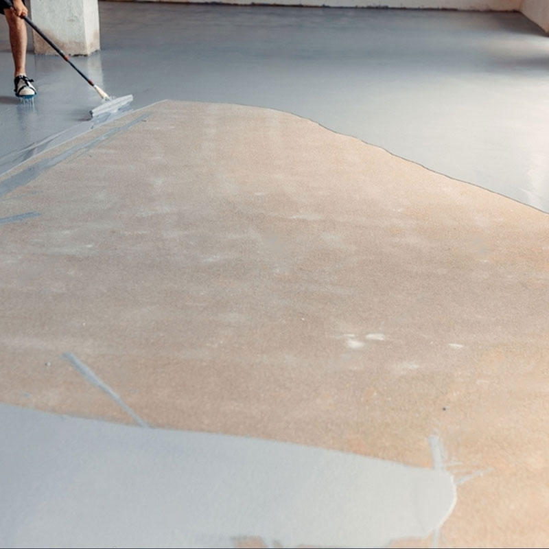 1. Prepare the floor by grinding, filling cracks and repairing any damage.
